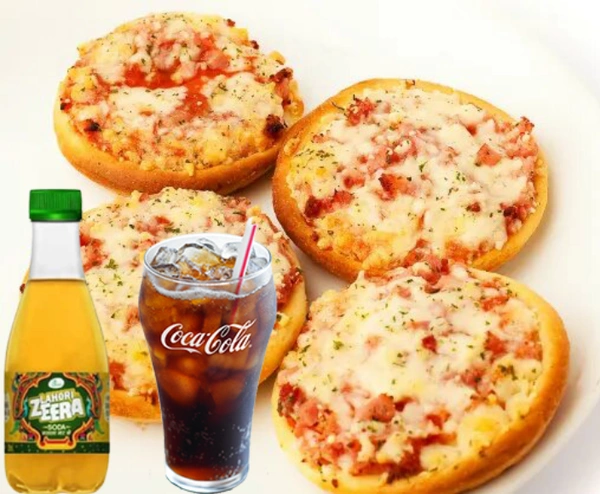 Mini Pizza 4, Lahori Jeera 1, Coke 1
